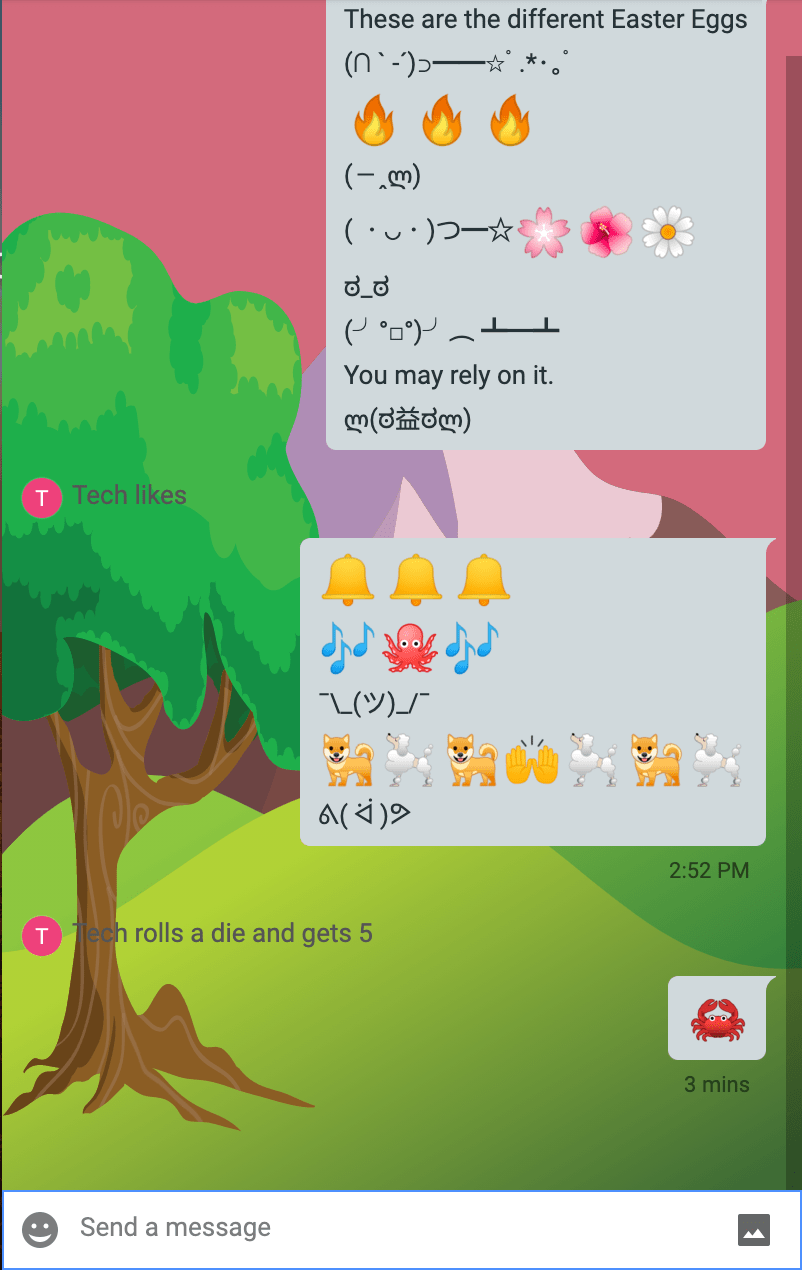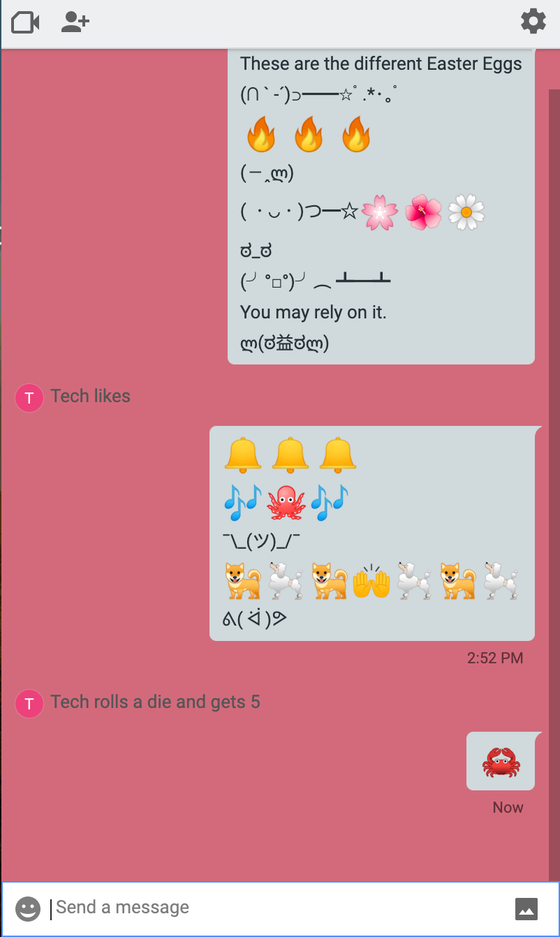 激活这些复活节彩蛋涉及到与其他人聊天,无论他们是谁。每个复活节彩蛋背后的想法很简单:每个复活节彩蛋都可以用来在任何时候向正在聊天的人或群组发送有趣的动画。