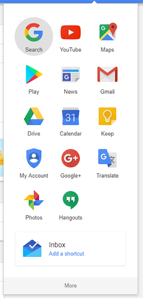 1. 点击浏览器窗口右上角的网格,这将显示 Google 应用列表