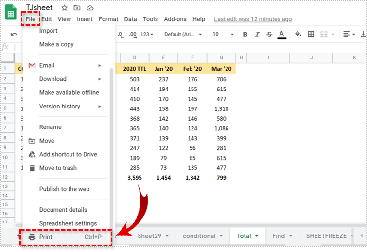1. 打开打印菜单。这可以通过多种方式完成。单击顶部菜单上的文件,然后向下滚动到打印。单击快速图标菜单下的打印机图标,或使用快捷键 Ctrl + P。