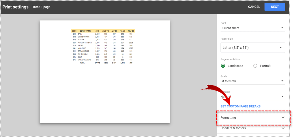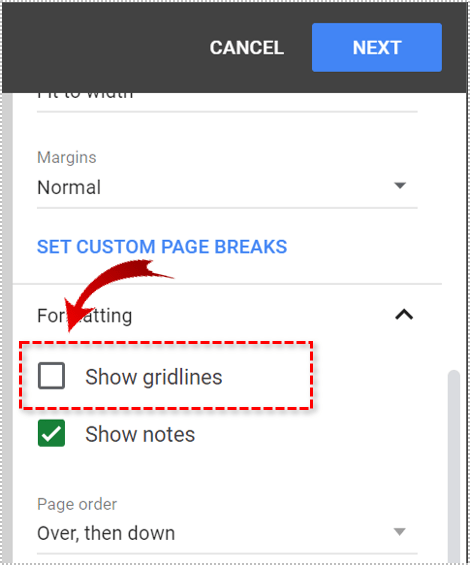 如果您使用的是 Google 表格以外的其他打印设置菜单,请检查“格式”选项卡下是否有“网格线”选项。如果没有,或者如果您的打印机菜单中没有格式选项卡,请参阅您的打印机手册以查找详细信息。