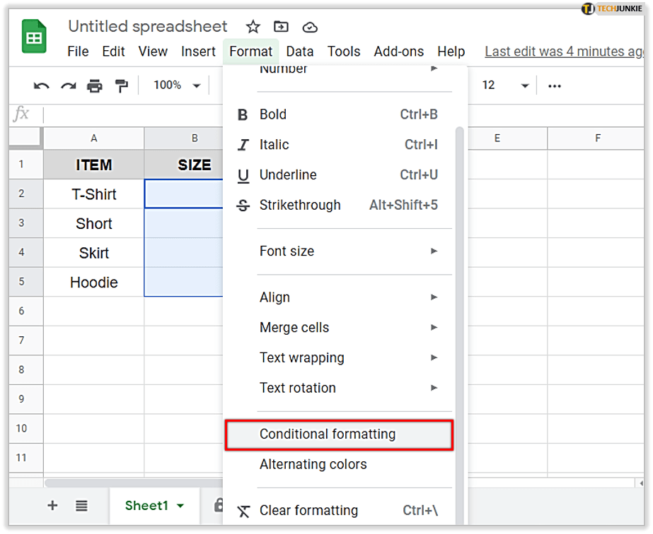 - 从出现的菜单中;向下滚动并选择“条件格式”。