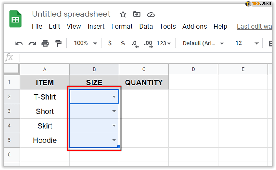 - 下拉列表应显示在您在第 3 步中输入的单元格中。它显示为一个小箭头图标。