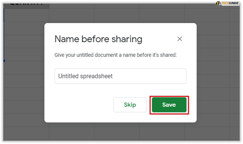 - 如果出现提示,请为您的工作表命名,然后单击位于弹出窗口右下角的“保存”。