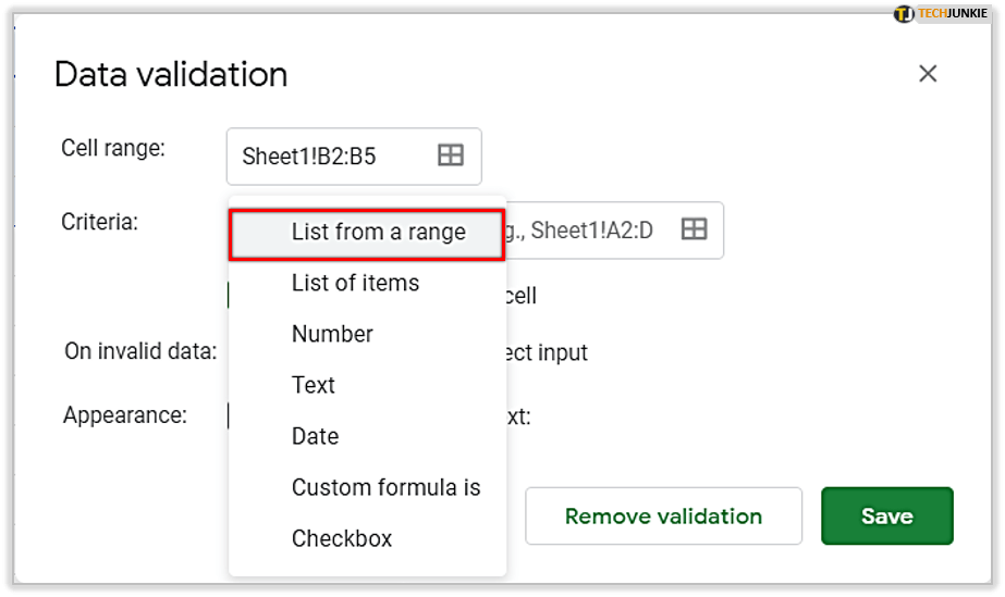 您的 Google 表格可能是一个不断发展的文档,因此使用此选项可以轻松更新您的下拉列表。