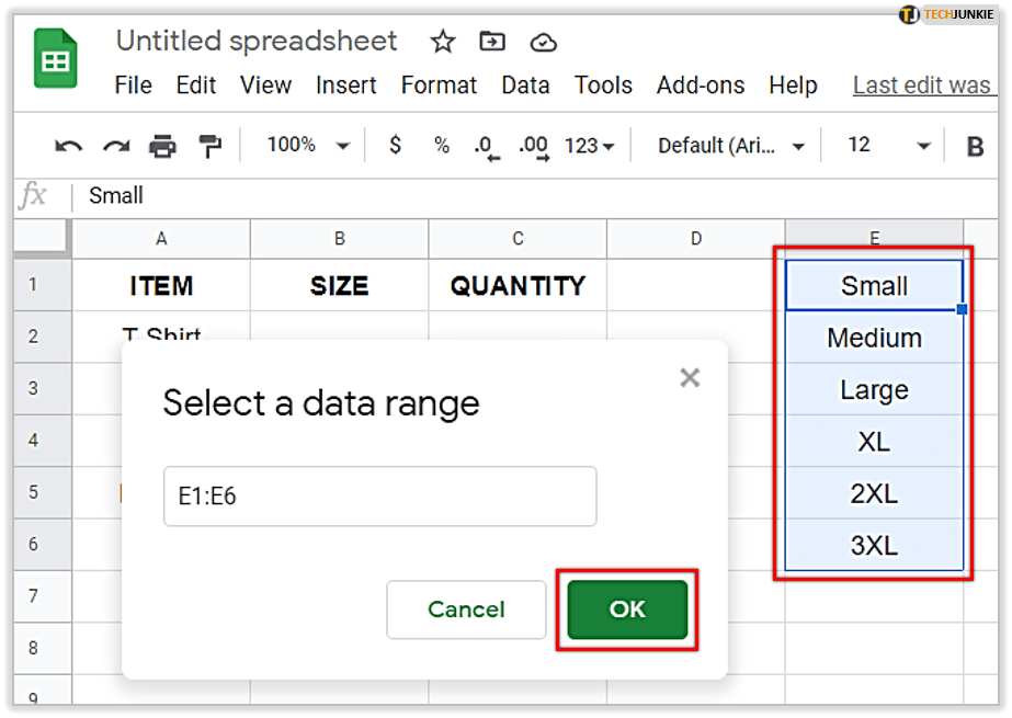 - 如果您突出显示了适当的单元格范围;这应该会自动填充在单元格范围部分。如果需要,您可以在此处更改范围。