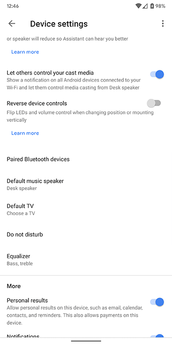 进入手机上的 Google Home 应用,然后从仪表板中选择您喜欢的扬声器。点击应用程序右上角的设置图标,然后滚动到此页面的中间。您正在寻找“配对的蓝牙设备”,该菜单可让您查看手机、平板电脑、笔记本电脑或任何其他支持蓝牙的设备并将其与扬声器配对。