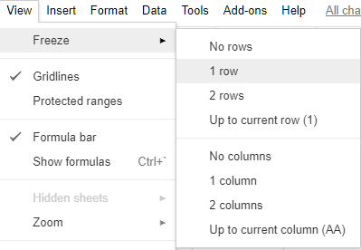 一个解决方案是必要的,幸运的是,有一种方法可以解决这个小障碍。 Google Sheets 允许您将标题列(和行)冻结到位,以便在每一页上打印所有标题。不用说,通过让每个后续页面重复 Google 表格第一页上的标题,这可以更轻松地识别每一列。