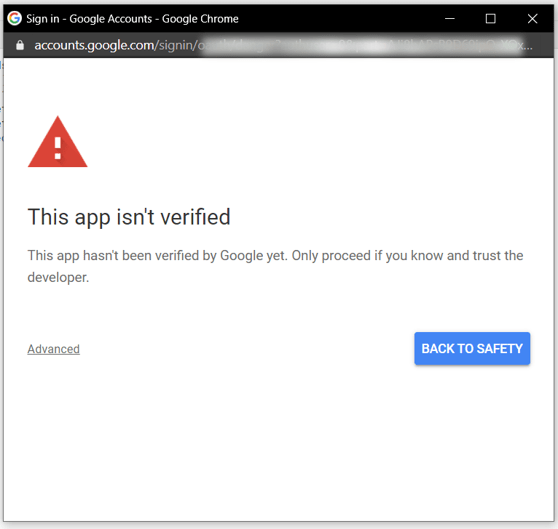 2. 弹出警告,通知您 Google 无法识别脚本的作者。