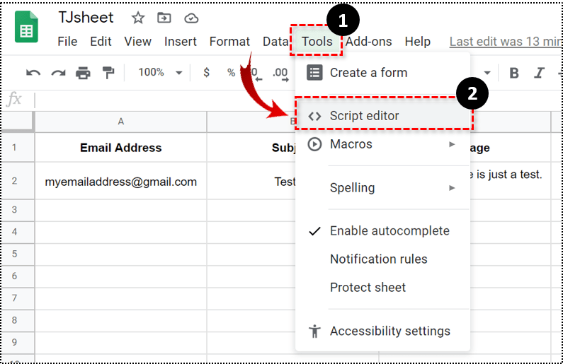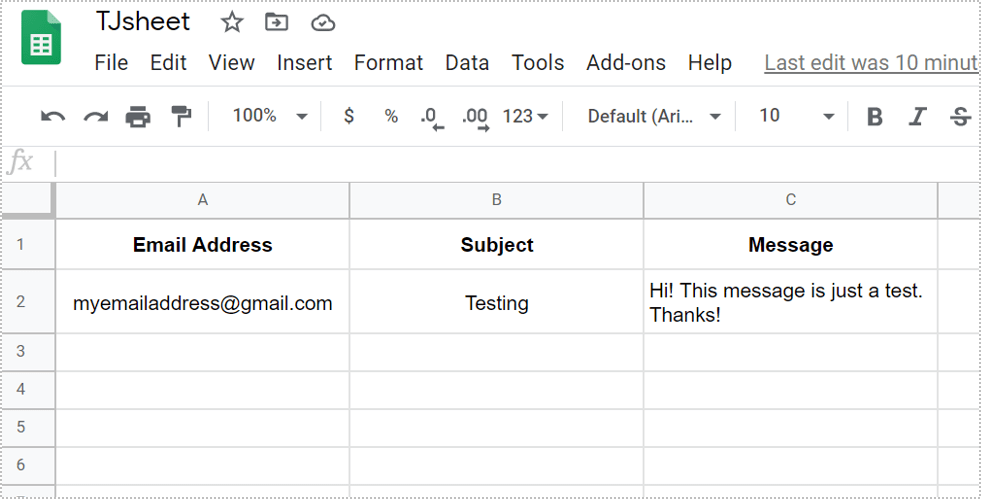 这是最简单也是最好的方案帮助您了解 Google 表格编码的工作原理。为此,您需要三部分数据:电子邮件地址、电子邮件主题和消息文本。最好在此处使用您自己的电子邮件地址,以便您可以检查脚本是否已完成其工作。