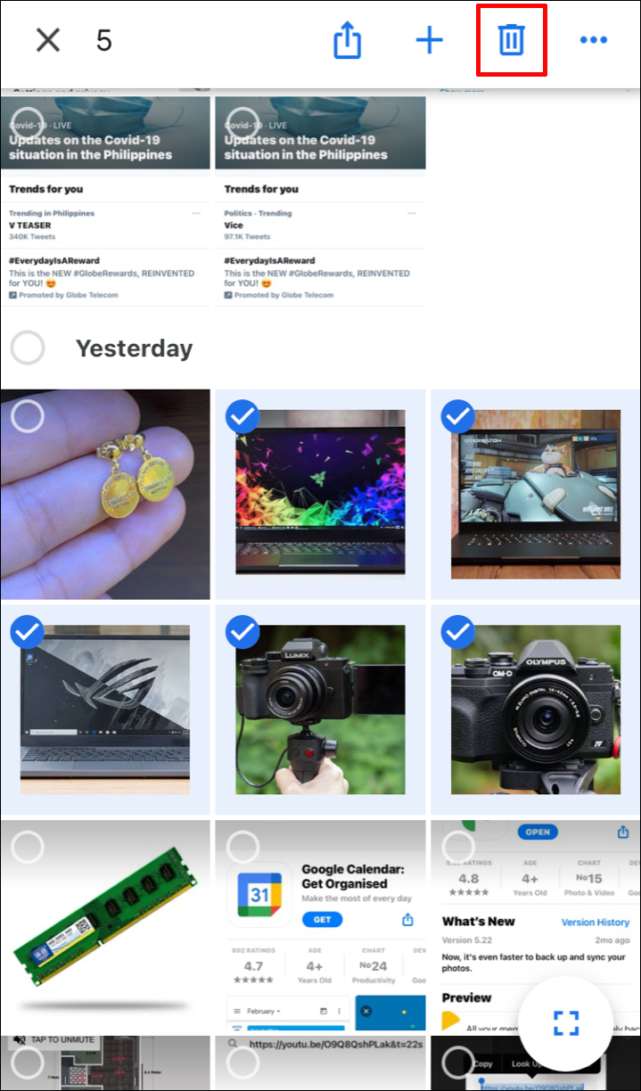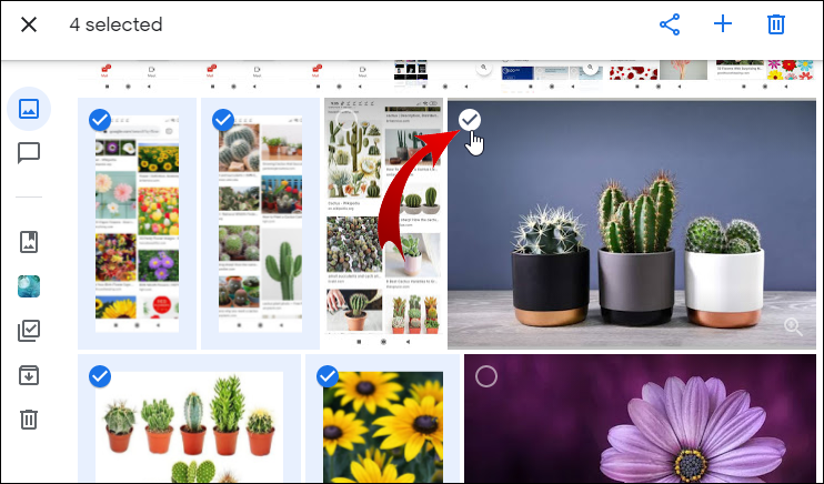 3. 对于 Android 设备,点按任意照片并按住几秒钟。然后,只需点击其他照片即可选择它们。