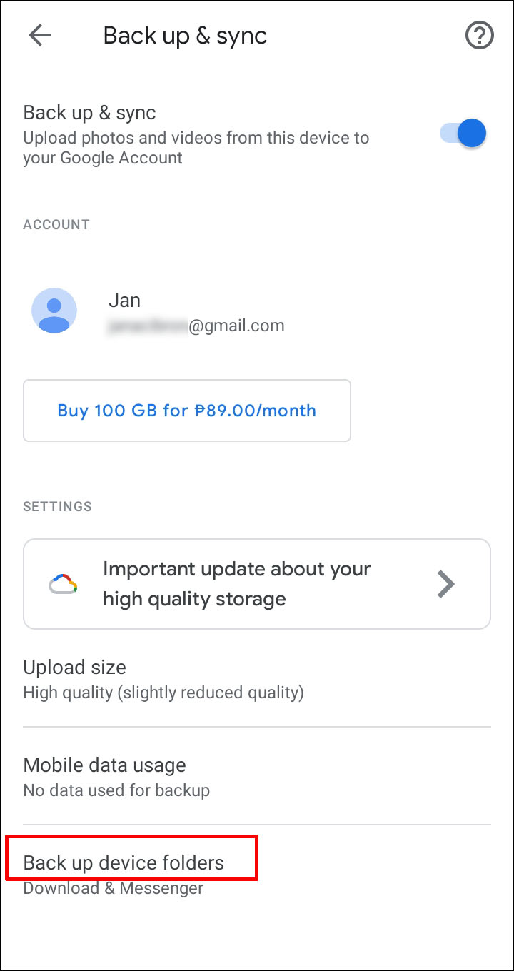 Google 相册将您的图片存储在您的设备和云端。如果您想释放一些空间,您可以从您的设备中删除 Google 相册图片。只需打开应用程序单击右上角的菜单。导航到“设置”,然后“备份和同步”。如果您看到一个交叉的云图标,则您的文件未同步到云。打开同步并等待,然后再打开它关闭。导航回应用设置并选择“释放设备存储空间”以清除您的图库。