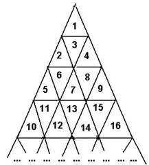 某三角形中各边长为1的小三角形按下图所示的方式用连续整数编号,