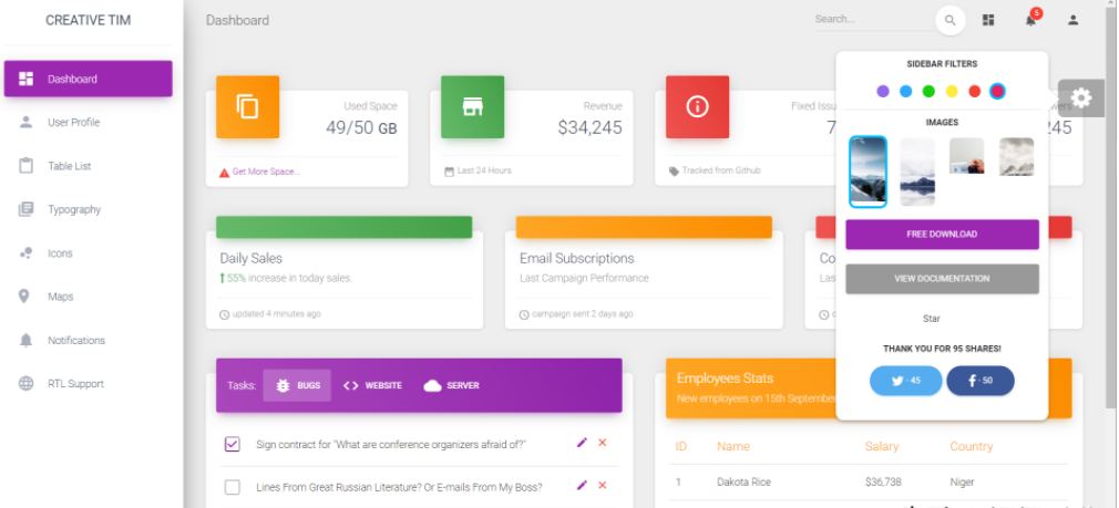 开源地址:https://github.com/creativetimofficial/material-dashboard#demo