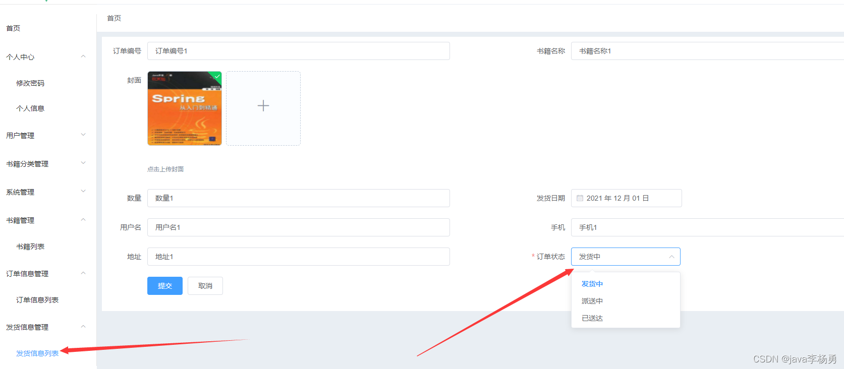 订单管理:管理员可以查看订单信息、对订单状态进行修改、以及发货状态等操作 ,