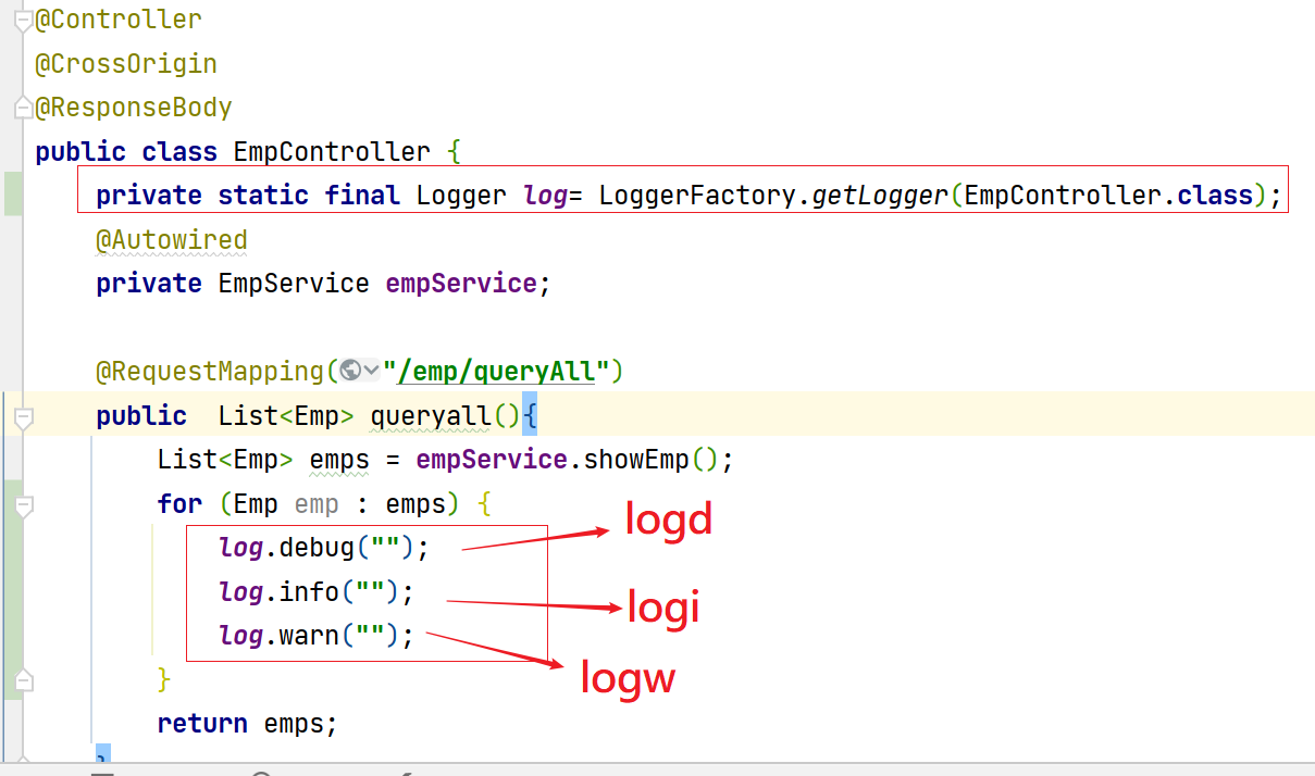 private static final Logger log= LoggerFactory.getLogger(EmpController.class);