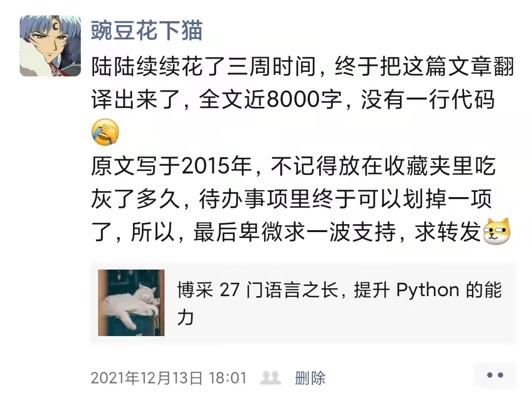 主页 文章列表 Python猫 2021 文章小结,翻译竟比原创多!